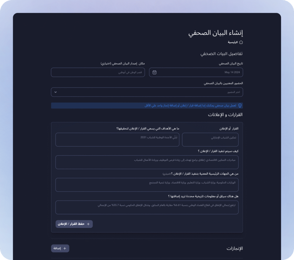 حسن الجودة والسرعة والاتساق في اتصالاتك بكفاءة مدعومة بالذكاء الاصطناعي. اختبر مستقبل صياغة البيانات الصحفية العامة اليوم.